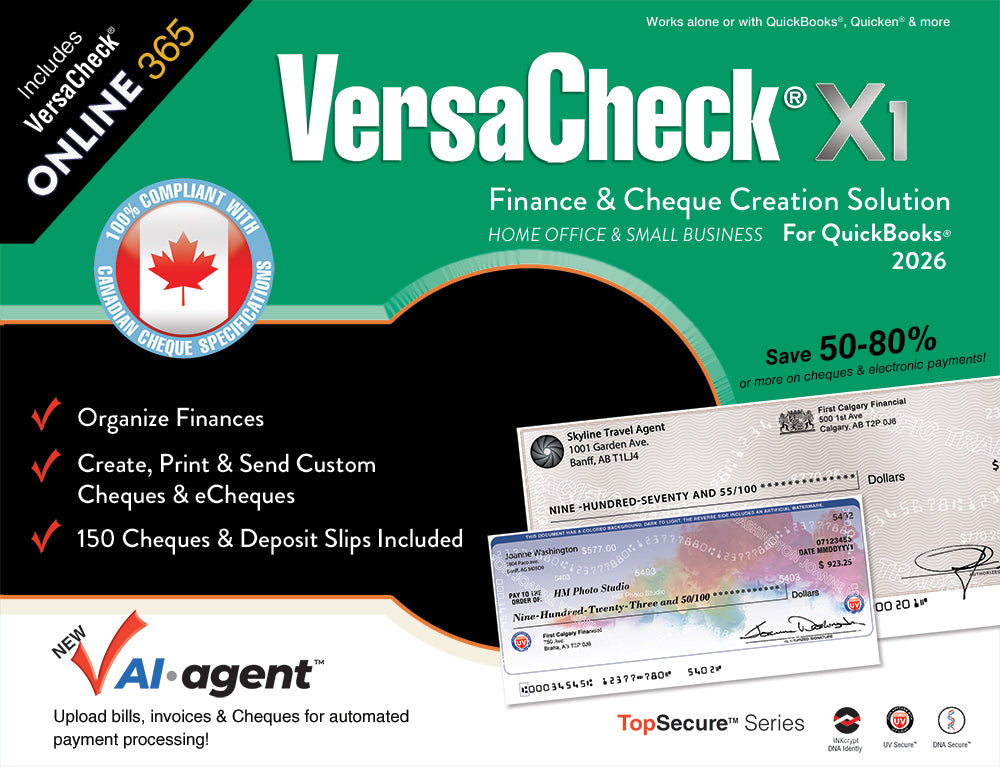 | Also supports Canadian Bank Requirements when used with VersaCheck Canadian Check Forms | ✓ | ✓ | ✓ | ✓ | ✓ | ✓ |